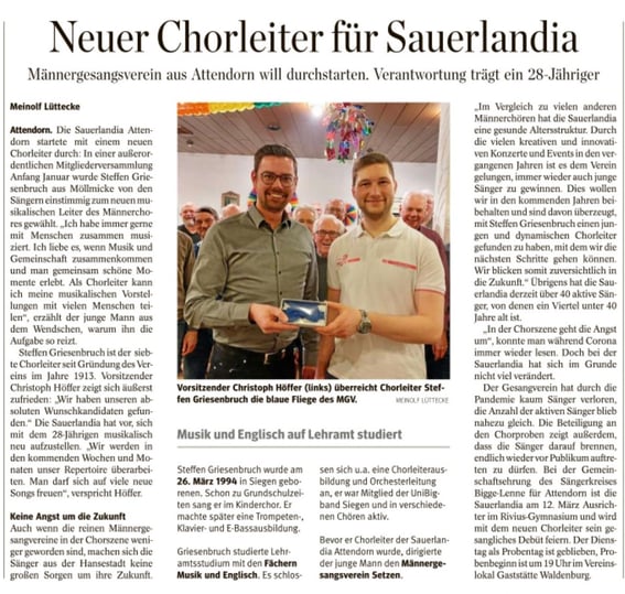 waren sie in der Sauerlandia ja schon immer! Wer Lust hat, sich den Männern in ihren neuen Hemden anzuschließen, ist herzlich eingeladen, jeden Dienstag zur Chorprobe um 19:00 Uhr in das neue