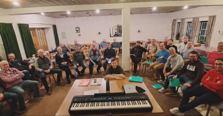 Aufgrund der Größe des Chores mit rund 40 aktiven Sängern gibt es nämlich kaum einen Raum, der groß genug wäre für eine Chorprobe unter Beachtung der vorgeschriebenen Abstände. Aber flexibel